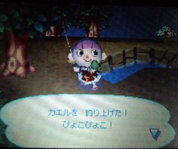 こんにちは! 明日から休みだというのに、風邪ひいちゃいました・・・ ゲームやるのもだるいです。昨日はまだちょっと元気だったので、魚釣りをしました。げこげこカエルをつって、博物館に寄贈。博物館の中でもカエルはげこげこ。はすの葉に乗って鳴いているカエルに癒されたり